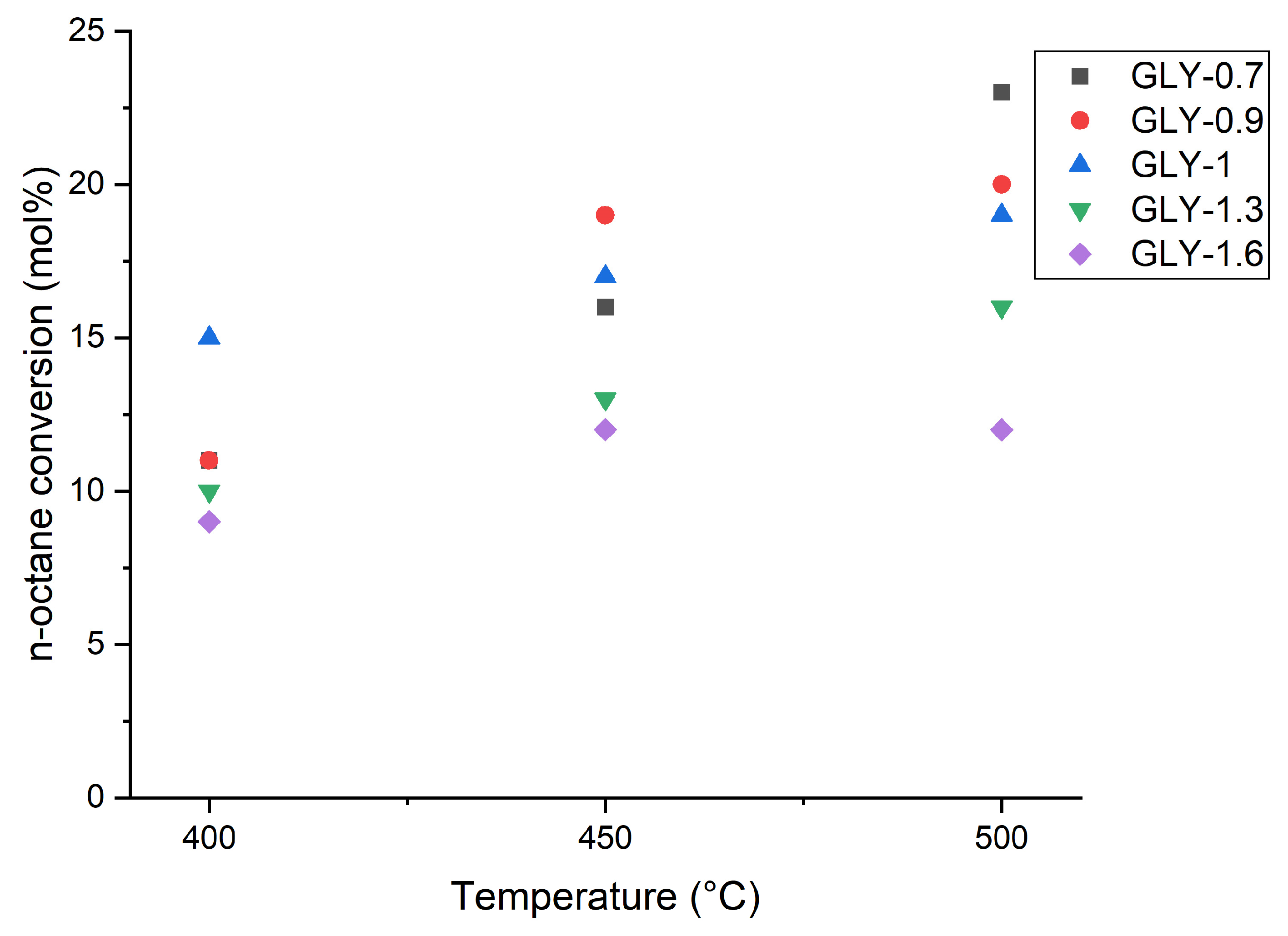 - Ntola, P.; Shozi, M. Gas-Phase Oxidative Dehydrogenation of n-Octane over Metal Oxide Catalysts: A Review. Catalysts 2024, 14, 100. [Google Scholar] [CrossRef]