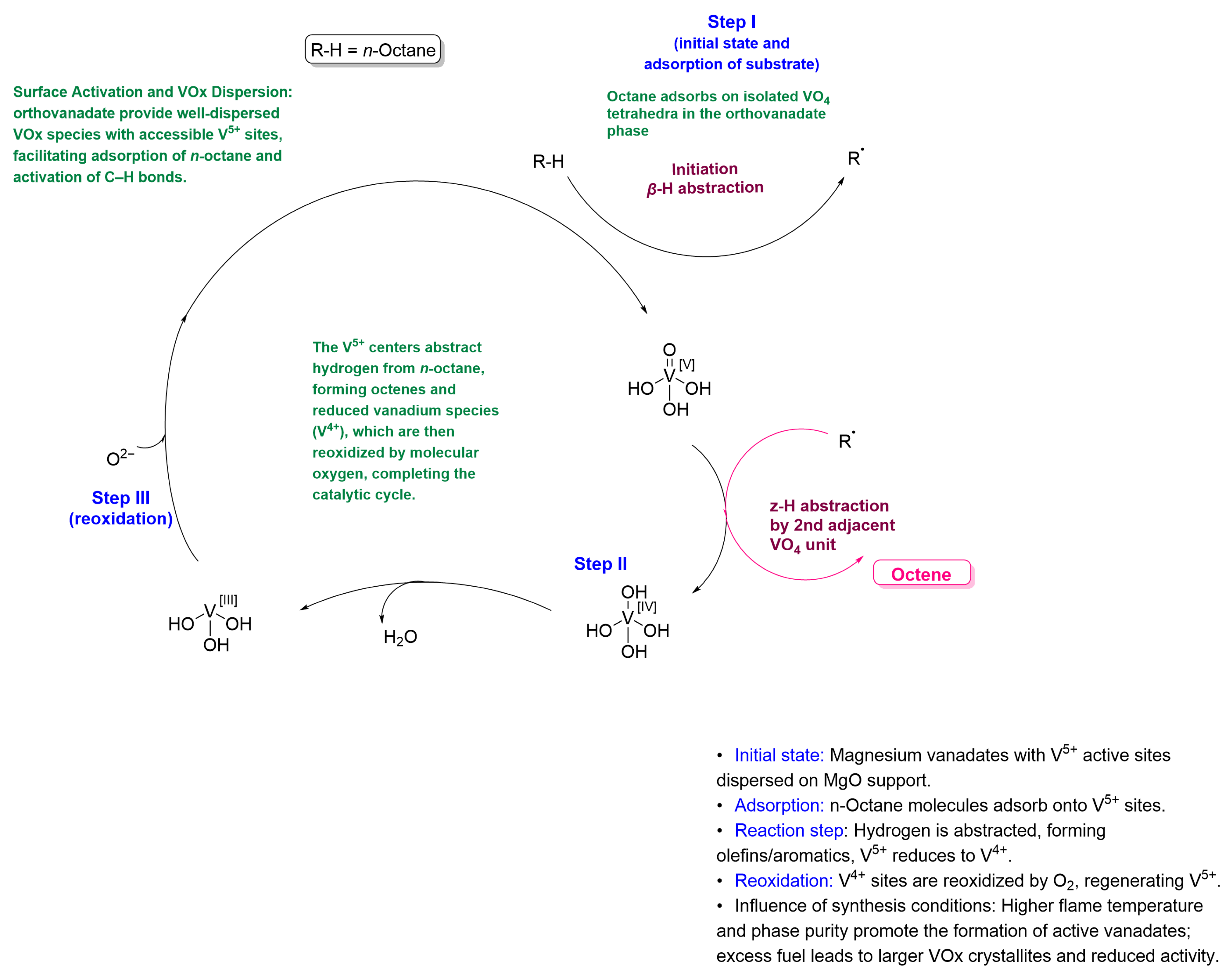 Ntola P, Singh S, Mahomed AS, Olivier EJ, Shozi M, Russell A, Celorrio V, Friedrich HB. The Effect of the Glycine-to-Oxidant Ratio on the Characteristics and Catalytic Performance of VOx/MgO Catalysts for ODH of n-Octane. Inorganics. 2025; 13(12):389. https://doi.org/10.3390/inorganics13120389