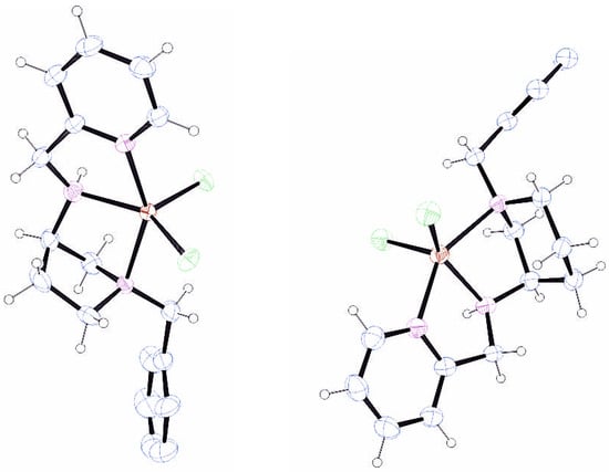 Five- and six-coordinate complexes containing two bidentate ligands or a tetradentate ligand can form, depending on the relative arrangement of the chelate rings, Λ and Δ isomers. For six-coordinate systems of the type [M(L)X2], where L is a tetradentate ligand, there are three geometric possibilities: trans, cis-α, and cis-β (Figure 1). The selective formation of one or other of these will depend, amongst other things, on the charge and size of the metal ion and the nature of the ligand(s) donors and chelate ring size/conformation [4,5,6]. When all three chelate rings are five-membered, cis forms appear to be preferred whereas the inclusion of one or more six-membered chelates, especially in the central ring, can lead to a preferential formation of trans isomers [7,8]. Tetramines with a -CH2CH(R)- central bridge tend not to lock out a single chelate conformation (δ or λ) and show lower configurational control than those ligands with conformationally rigid central chelates [9,10]. For metal ions that are kinetically inert, such as Ru(II) or Rh(III) [9,11], controlling factors can be kinetic in nature whereas for labile metals such as Zn(II), thermodynamic control dictates [12,13,14,15,16]. The cis forms exist as optical isomers (Δ and Λ) and, in the absence of any other discriminating agent such as a chiral anion (This only applies when the complex is a cation), selective formation of one or other of these requires a ligand with at least one pre-fixed chiral element. Identifying controlling factors can be complicated by the presence of not only configurational and conformational options but also, depending on the nature of the ligand, the establishment of further N-based chiral centres upon coordination. Determining the extent of any stereoselectvity in these systems usually relies on a combination of empirical techniques including SCXRD analysis, NMR spectroscopy (when possible), and chiroptical measurements, supplemented by theoretical calculations.
