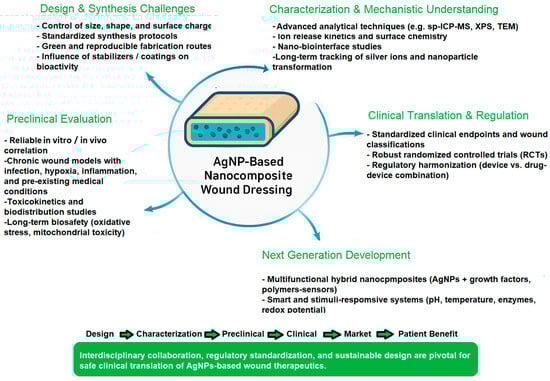 wound healing; silver nanoparticles; AgNPs; antimicrobial activity; anti-inflammatory; tissue regeneration; angiogenesis; hydrogels; nanofiber dressings; composite biomaterials; smart wound dressings; chronic wounds; burns; surgical wounds; cytotoxicity; safety; clinical applications; regulatory challenges; tissue repair; nanotechnology in medicine 1. Introduction: Wounds and the Wound Healing Process