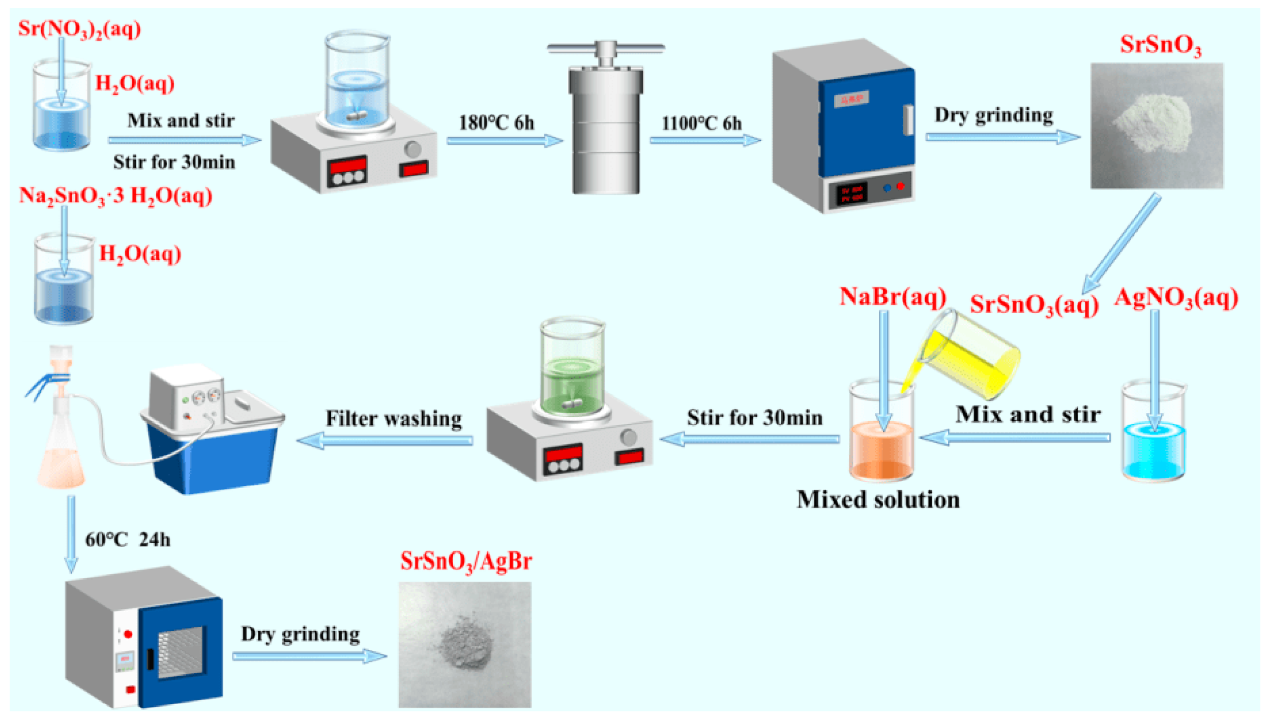 Tian-Wu, S.-H.; Liu, S.-M.; Zhong, Y.; Hu, C.-H.; Wang, D.-H.; Liu, H.; Xiong, Z.-Y.; Sang, T.; Zeng, B.-S.; Zhang, Q. Novel SrSnO3/AgBr Heterojunction for Dye Degradation Under Simulated Sunlight. Inorganics 2025, 13, 406. https://doi.org/10.3390/inorganics13120406
