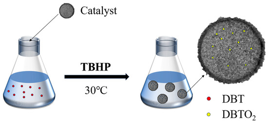 Fuel oil is widely utilized as energy source; however, its high quantity of sulfur remains a problem that needs to be solved [1]. During the combustion of gasoline and diesel, sulfur compounds such as dibenzothiophene (DBT), 4,6-dimethyldibenzothiophene (4,6-DMDBT), and 4-methylbenzothiophene (4-MDBT) produce sulfur oxides, which are harmful to human health and contribute to environmental pollution [2]. In response, stricter sulfur content regulations have been introduced worldwide, attracting research interest for development of effective petroleum desulfurization technologies [3,4,5,6]. Despite the recent advancements in the field, the efficient removal of sulfur compounds from fuel oils using minute quantities of catalysts at ambient temperatures is still rare.