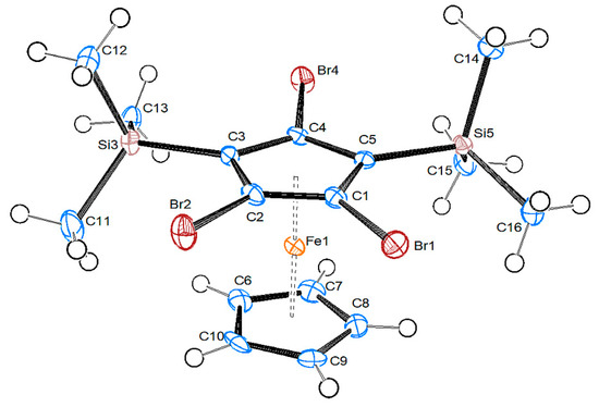 4.2.7. 1,3-Dibromo-2,4,5-tris(trimethylsilyl)ferrocene, [Fe(C5H5){C5Br2(SiMe3)3}], 8b