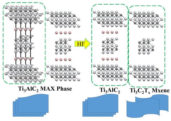 - Liu, X.; Chen, W.; Zhang, X. Ti3AlC2/Pd Composites for Efficient Hydrogen Production from Alkaline Formaldehyde Solutions. Nanomaterials 2022, 12, 843. [Google Scholar] [CrossRef]
