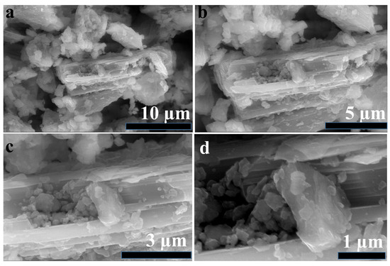 (a–d) SEM images of Ti3AlC2 in different magnifications.