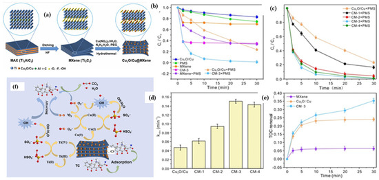 - Zhou, Q.; Hong, P.; Shi, X.; Li, Y.; Yao, K.; Zhang, W.; Wang, C.; He, J.; Zhang, K.; Kong, L. Efficient degradation of tetracycline by a novel nanoconfinement structure Cu2O/Cu@MXene composite. J. Hazard. Mater. 2023, 448, 130995. [Google Scholar] [CrossRef]