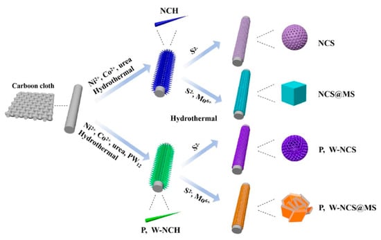 - Wu, J.; Hu, G.; Zhao, J.; Zou, C.; Xing, H.; Shen, W.; Li, Z.; Liu, H. Hierarchical flower bud-like P, W co-doped NiCo2S4@MoS2 composites as high-performance electrodes for asymmetric supercapacitor. Appl. Surf. Sci. 2024, 663, 160136. [Google Scholar] [CrossRef]