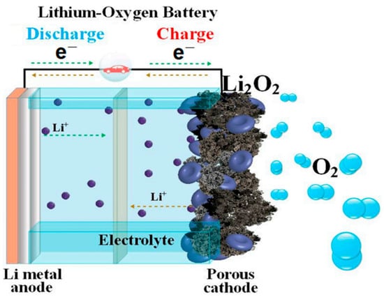 Schematic diagram of the lithium–oxygen battery [57]. Copyright 2023, Batteries.