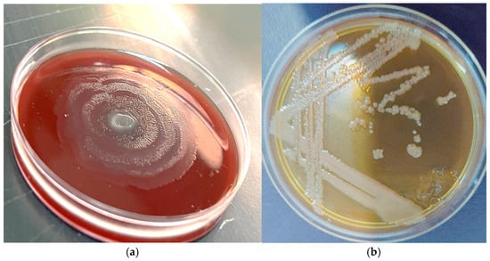 (a) P. mirabilis on MacConkey agar and (b) P. mirabilis on the blood agar at 37 °C for 24 h.