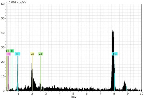 Energy-dispersive X-ray spectrometry of CuO-ZnO nanocomposites.