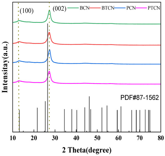 XRD patterns of BCN, BTCN, PCN, and PTCN.