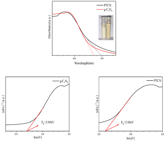 UV-Vis and Eg images of g-C3N4, PTCN.