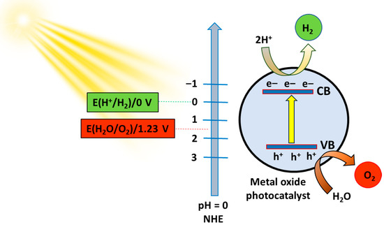 - Kumaravel, V.; Mathew, S.; Bartlett, J.; Pillai, S.C. Photocatalytic hydrogen production using metal doped TiO2: A review of recent advances. Appl. Catal. B Environ. 2019, 244, 1021–1064. [Google Scholar] [CrossRef]