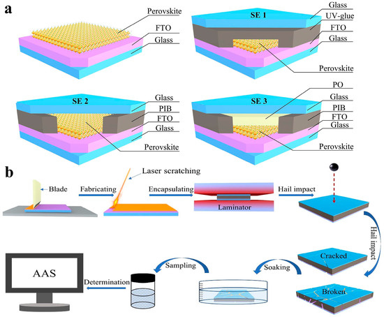 - Li, J.; Xia, R.; Qi, W.; Zhou, X.; Cheng, J.; Chen, Y.; Hou, G.; Ding, Y.; Li, Y.; Zhao, Y.; et al. Encapsulation of perovskite solar cells for enhanced stability: Structures, materials and characterization. J. Power Sources 2021, 485, 229313. [Google Scholar] [CrossRef]
