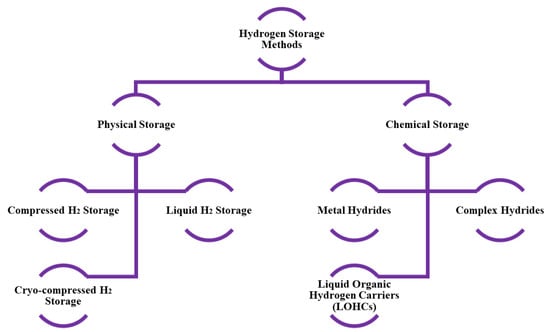 Classification techniques for hydrogen storage, reprinted from MDPI Designs 2023 (redrawn based on [25]).