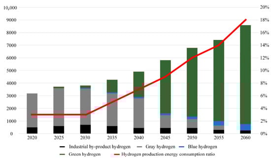 Hydrogen supply scale and energy consumption in China, redrawn from [12].