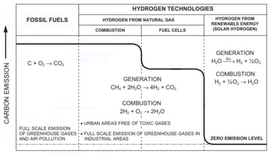 A comparison between fossil fuels and hydrogen combustion, reprinted from MDPI Energies 2021 [31].