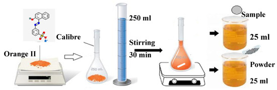 The method used to prepare Orange II solutions for the photocatalysis experiment.