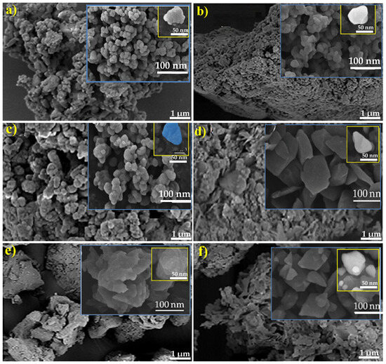 SEM and TEM images of powder ceramics prepared by traditional mixing with the addition of ZnO, CuO, and MgO. Reproduced with permission [52,53]. DD3 (a), DD3 + 38 wt.% ZrO2 (b), DD3/28 wt.% ZnO/2.8 wt.% CuO (c), DD3 + 38 wt.% ZrO2/28 wt.% ZnO/2.8 wt.% CuO (d), DD3/30.8 wt.% MgO (e), and DD3 + 38 wt.% ZrO2/30.8 wt.% MgO (f).