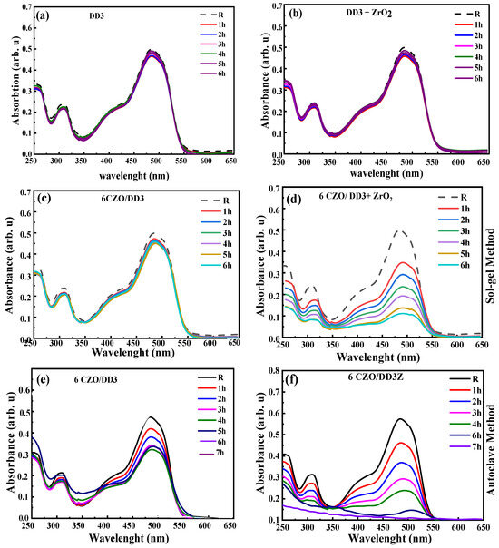 - Atta, D.; Wahab, H.A.; Ibrahim, M.A.; Battisha, I.K. Photocatalytic degradation of methylene blue dye by ZnO nanoparticle thin films, using sol–gel technique and UV laser irradiation. Sci. Rep. 2024, 14, 26961. [Google Scholar] [CrossRef]