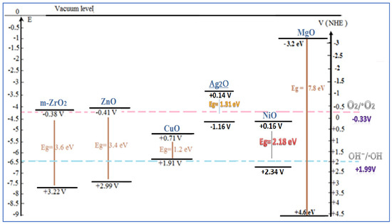 - Elashery, S.E.A.; Ibrahim, I.; Gomaa, H.; El-Bouraie, M.M.; Moneam, I.A.; Fekry, S.S.; Mohamed, G.G. Comparative study of the photocatalytic degradation of crystal violet using ferromagnetic magnesium oxide nanoparticles and MgO-bentonite nanocomposite. Magnetochemistry 2023, 9, 56. [Google Scholar] [CrossRef]