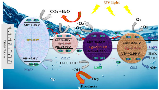 - Fouda, A.; Salem, S.S.; Wassel, A.R.; Hamza, M.F.; Shaheen, T. Optimization of green biosynthesized visible light active CuO/ZnO nano-photocatalysts for the degradation of organic methylene blue dye. Heliyon 2020, 6, e04896. [Google Scholar] [CrossRef]