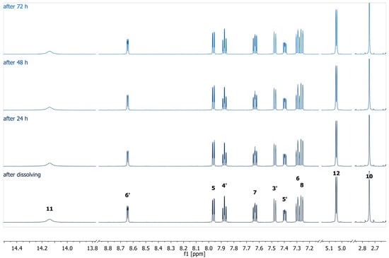 1H (600 MHz, DMSO-d6) spectra of the complex AgHL1 measured at different time periods.