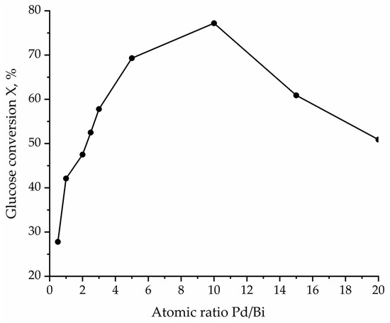 The dependence of the glucose conversion on the Pd/Bi ratio.