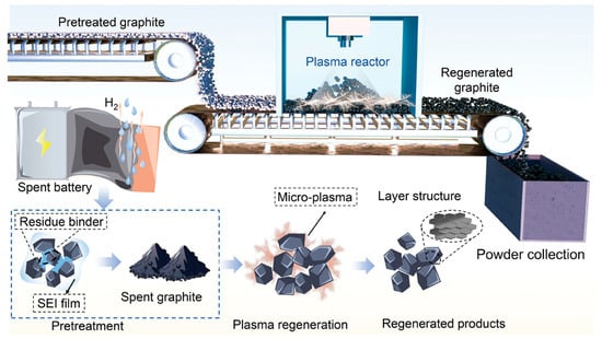 - Shan, M.; Xu, S.; Cao, Y.; Han, B.; Zhu, X.; Zhang, T.; Dang, C.; Zhu, J.; Zhou, Q.; Xue, Z.; et al. Rapid Regeneration of Graphite Anodes via Self-Induced Microwave Plasma. Adv. Funct. Mater. 2024, 34, 2411834. [Google Scholar] [CrossRef]