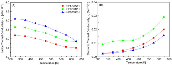 Figure 11 illustrates the separation of the total thermal conductivity into its two primary components, lattice thermal conductivity (κ