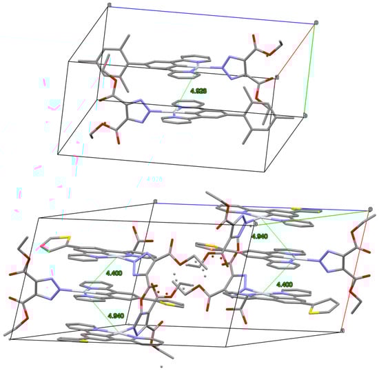 X-ray structure of complexes 22 and 23. At the top: unit cell of 22 with Pt–Pt distances; at the bottom: unit cell of 23 with Pt–Pt distances. CCDC deposition numbers 2309868 and 2309869.