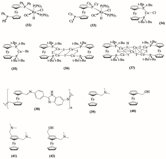 - Bauer, E.B. Recent Catalytic Applications of Ferrocene and Ferrocenium Cations in the Syntheses of Organic Compounds. Molecules 2024, 29, 5544. [Google Scholar] [CrossRef]