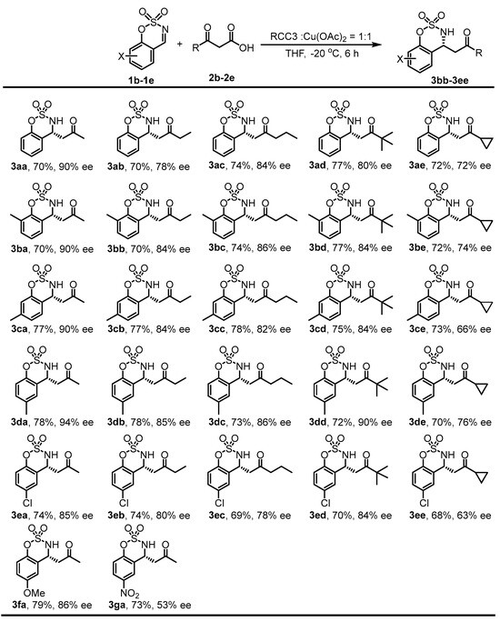 - Zhang, H.-X.; Nie, J.; Cai, H.; Ma, J.-A. Cyclic Aldimines as Superior Electrophiles for Cu-Catalyzed Decarboxylative Mannich Reaction of β-Ketoacids with a Broad Scope and High Enantioselectivity. Org. Lett. 2014, 16, 2542–2545. [Google Scholar] [CrossRef] [PubMed]