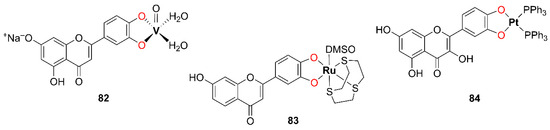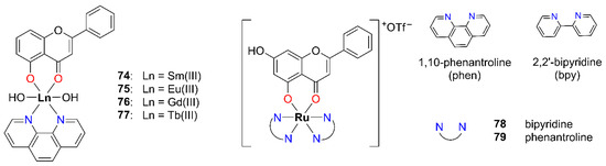 Besides mononuclear complexes, which contain only one central metal ion, bi- and polynuclear complexes with hydroxyflavones have also been reported. However, recent studies have not identified any of these multinuclear complexes exhibiting anticancer or antimicrobial activity. Only a few examples of these complexes with mixed coordination and demonstrated biological activity will be discussed [35,36].