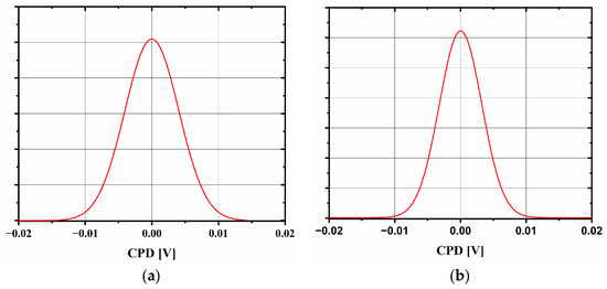 The CPD histogram distributions obtained with KPFM for bare FTO (a) and SP_24 sample (b).