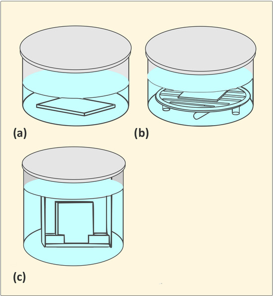 Sample positions in TiCl4 aqueous solutions: horizontally without homogenization (a), horizontally with homogenization (b), and vertically (c).