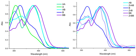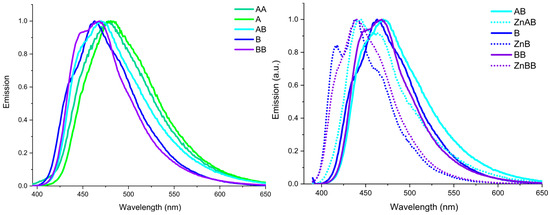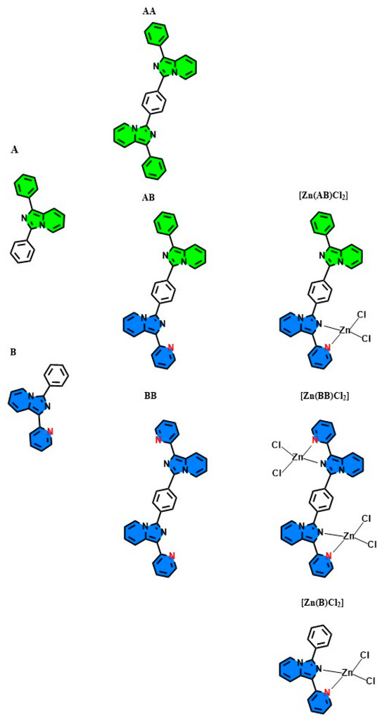 | B | [Zn(B)Cl2] | BB | [Zn2(BB)Cl4] | AB | [Zn(AB)Cl2] | Assignment |