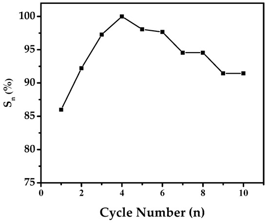 Figure 10 shows the capacity retention rates (Sn) in percent for the alloy electrode against cycle numbers. The fluctuating curves offer insights into how the discharge capacity undergoes changes due to oxidation during charge/discharge cycles.