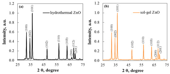 XRD pattern of (a) hydrothermal and (b) sol–gel ZnO.