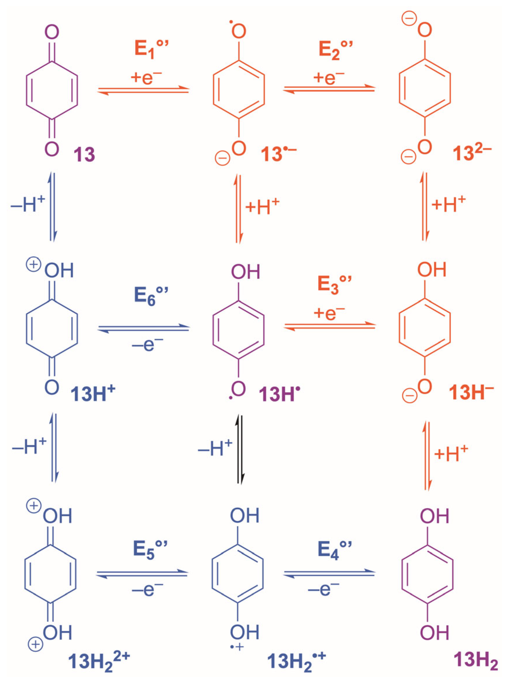 - Kim, R.S.; Chung, T.D. The Electrochemical Reaction Mechanism and Applications of Quinones. Bull. Korean Chem. Soc. 2014, 35, 3143–3155. [Google Scholar] [CrossRef]