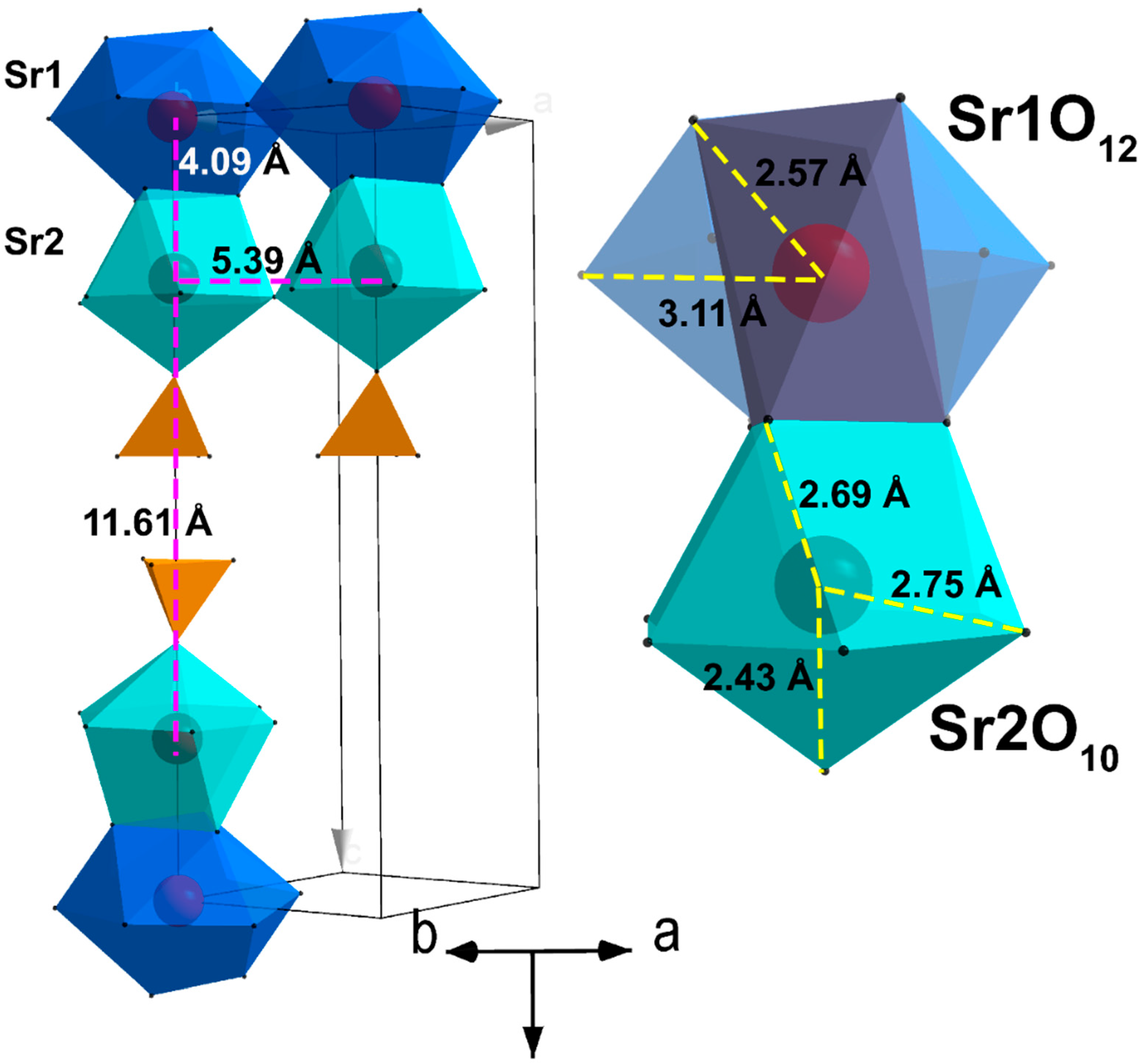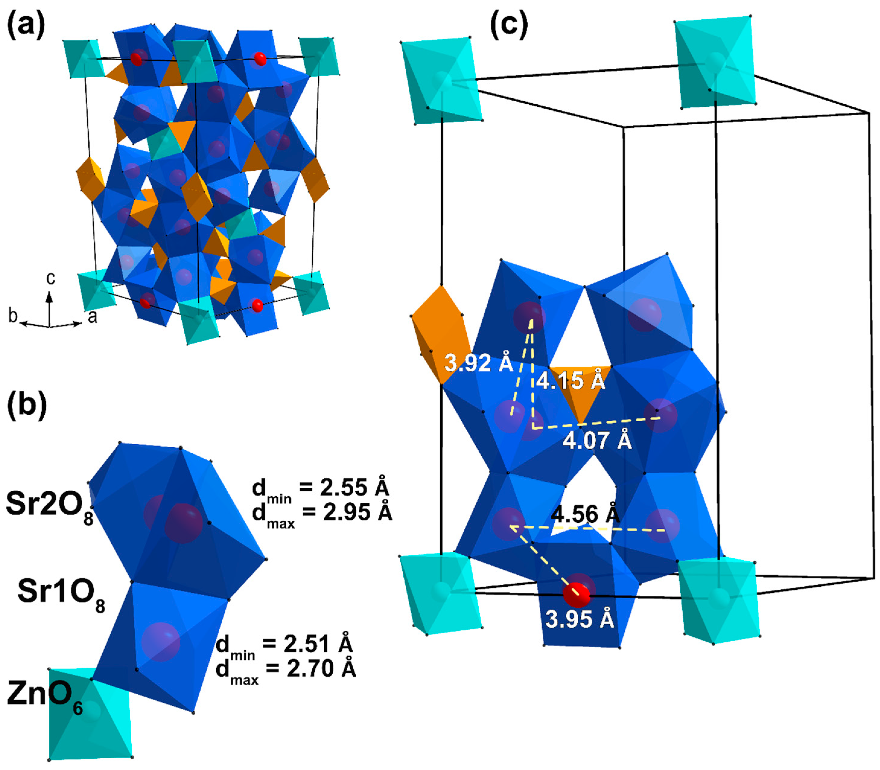 | Sr2+ 1.26 Å/8 | Sr2+ 1.18 Å/6 | Ca2+ 1.12 Å/8 | Ca2+ 1.00 Å/6 | Zn2+ 0.74 Å/6 | ||