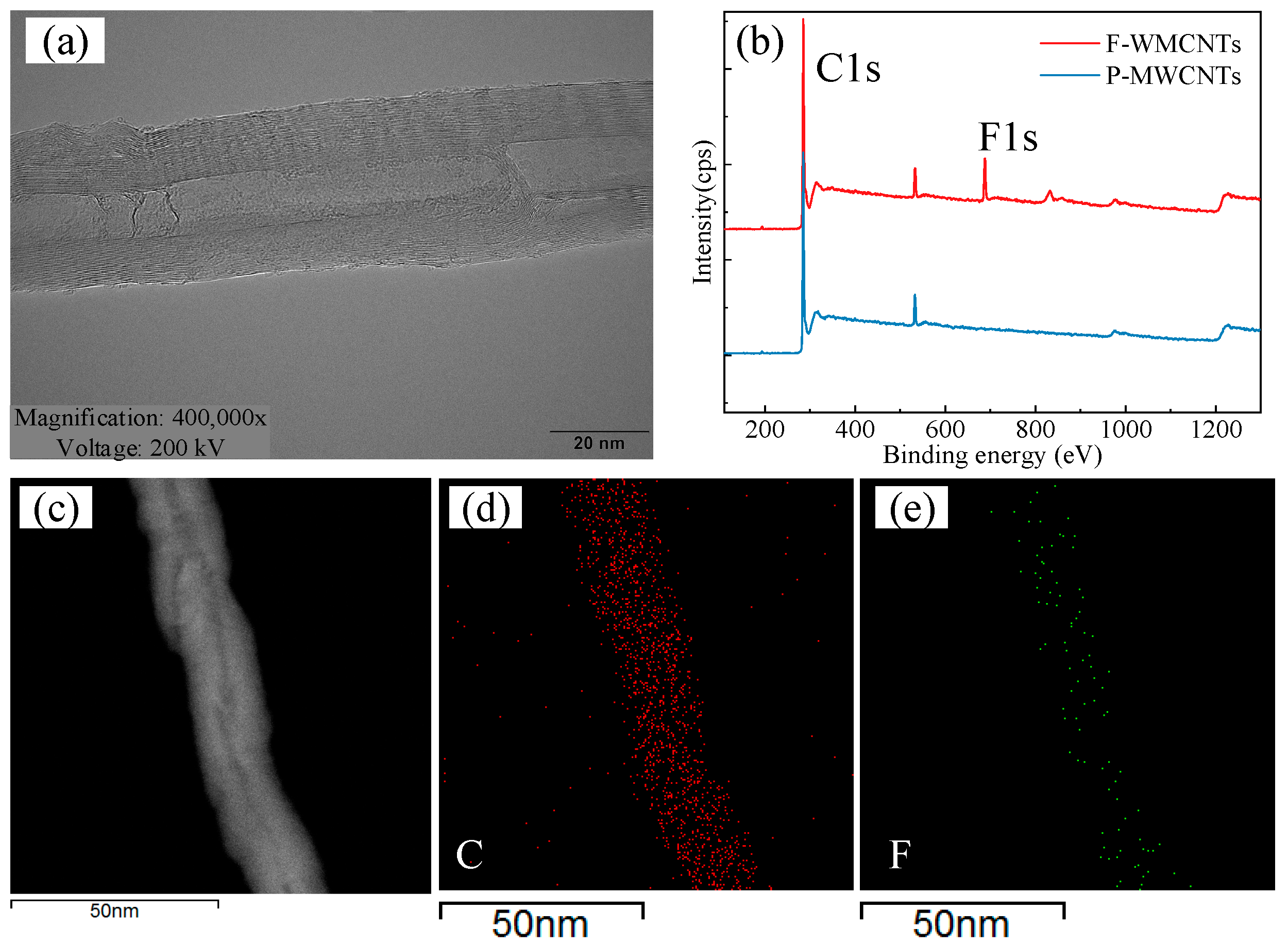 - Park, M.S.; Kim, K.H.; Lee, Y.S. Fluorination of single-walled carbon nanotube: The effects of fluorine on structural and electrical properties. J. Ind. Eng. Chem. 2016, 37, 22–26. [Google Scholar] [CrossRef]