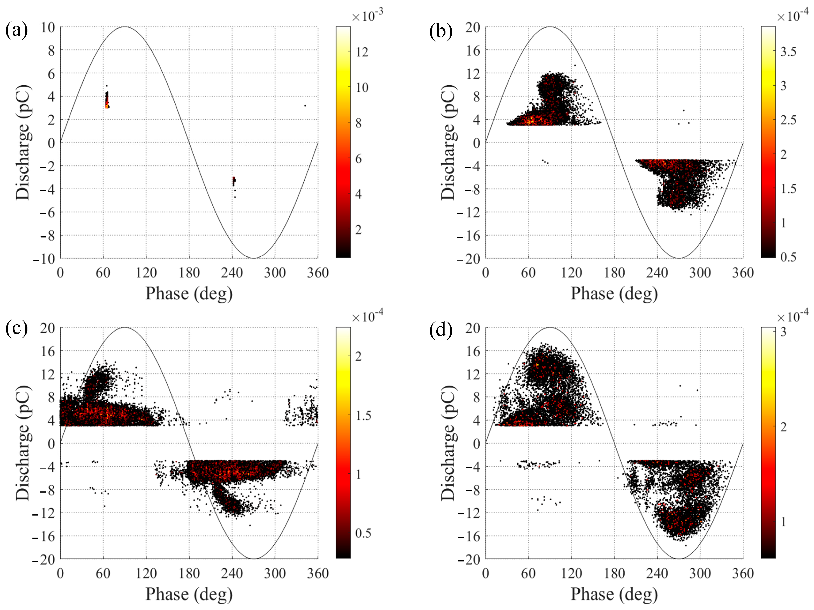 - Li, J.; Si, W.; Yao, X.; Li, Y. Measurement and simulation of partial discharge in oil impregnated pressboard with an electrical aging process. Meas. Sci. Technol. 2009, 20, 105701. [Google Scholar] [CrossRef]