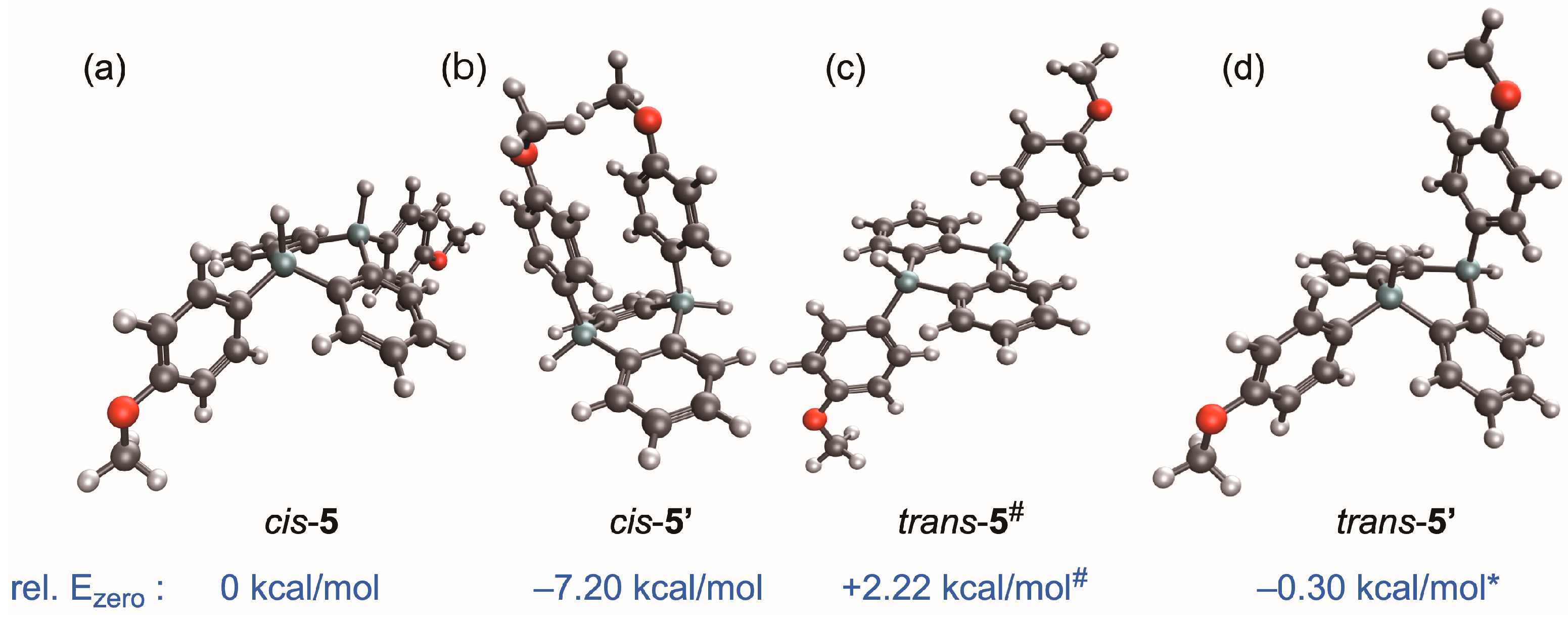 35]. Geometry optimizations were performed at the levels shown in the main text. Minimum energies for the optimized structures were confirmed by frequency calculations. Computational time was generously provided by the Supercomputer Laboratory at the Institute for Chemical Research (Kyoto University) and by the Research Center for Computational Science (Okazaki, Japan, Project: 25-IMS-C214/25-IMS-C360). The coordinates of the optimized structures are included in the corresponding .xyz files as
