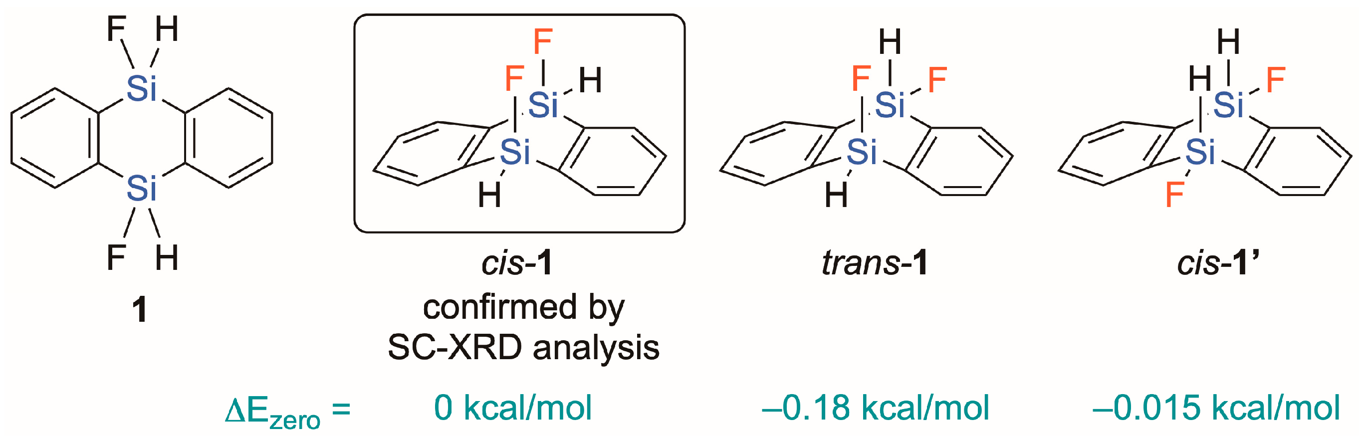 3.5. Synthesis of 9,10-Difluoro-9,10-disila-9,10-dihydroanthracenes (1) from cis-5