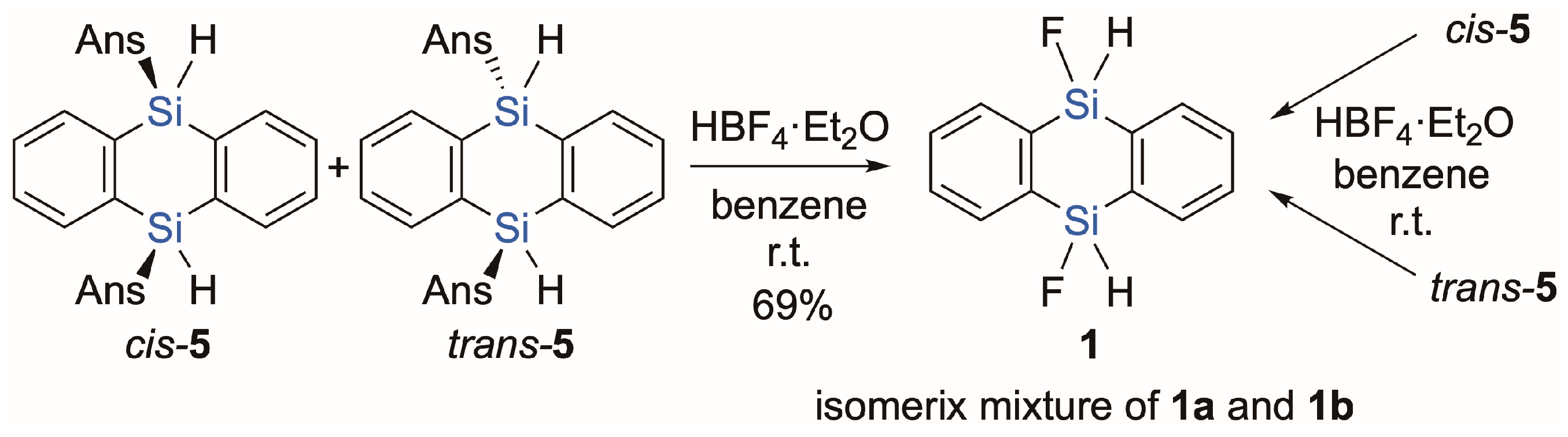 3.6. Synthesis of 9,10-Difluoro-9,10-disila-9,10-dihydroanthracenes (1) from trans-5
