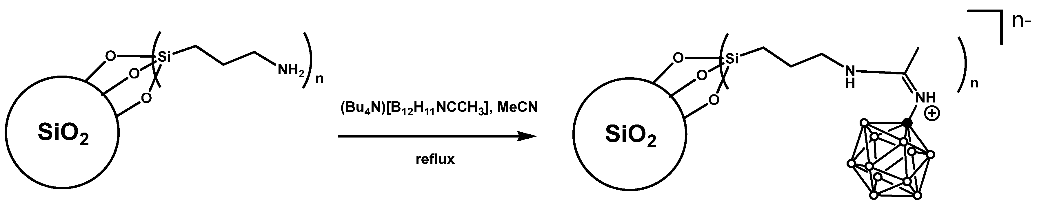 B12_APTES@SiO2), a two-step protocol was employed. First, the boron-functionalized amidine (Bu