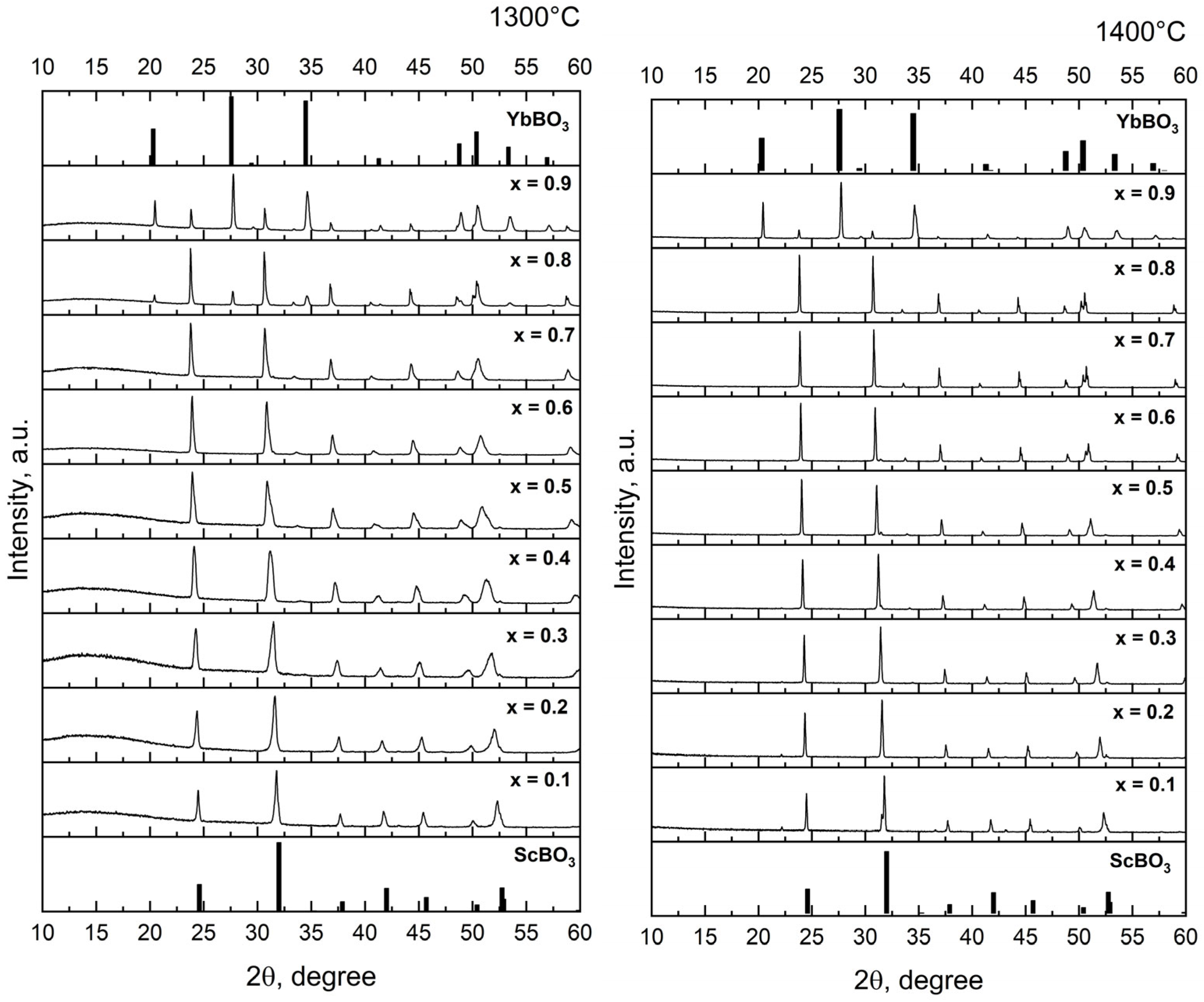APA StyleZholdas, Y., Kuznetsov, A., Bolatov, A., Jamous, A., Svetlichnyi, V., & Kokh, K. (2026). Phase Relations and Solid Solutions in the YbBO3–ScBO3 System. Inorganics, 14(1), 9. https://doi.org/10.3390/inorganics14010009