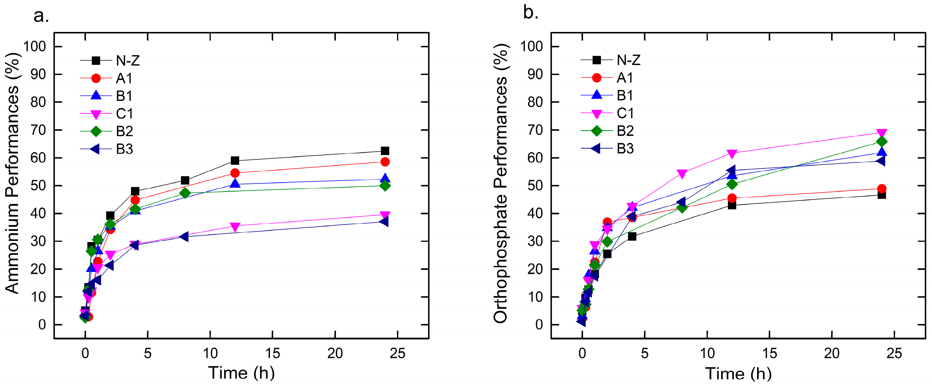 - Biliani, I.; Zacharias, I. Natural and Modified Zeolites as Adsorbents for Nitrogen and Phosphorus Control in Eutrophic Freshwater Bodies: A Comprehensive Review on Freshwater Applications of the Last 10 Years. Materials 2025, 18, 4870. [Google Scholar] [CrossRef] [PubMed]