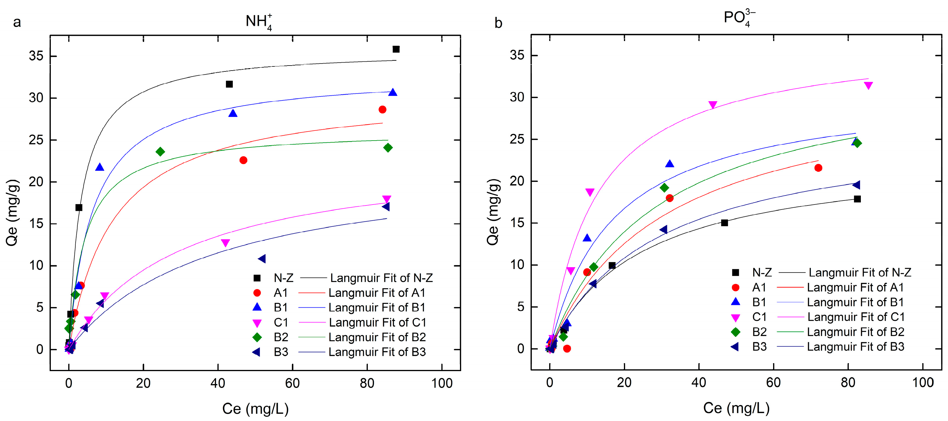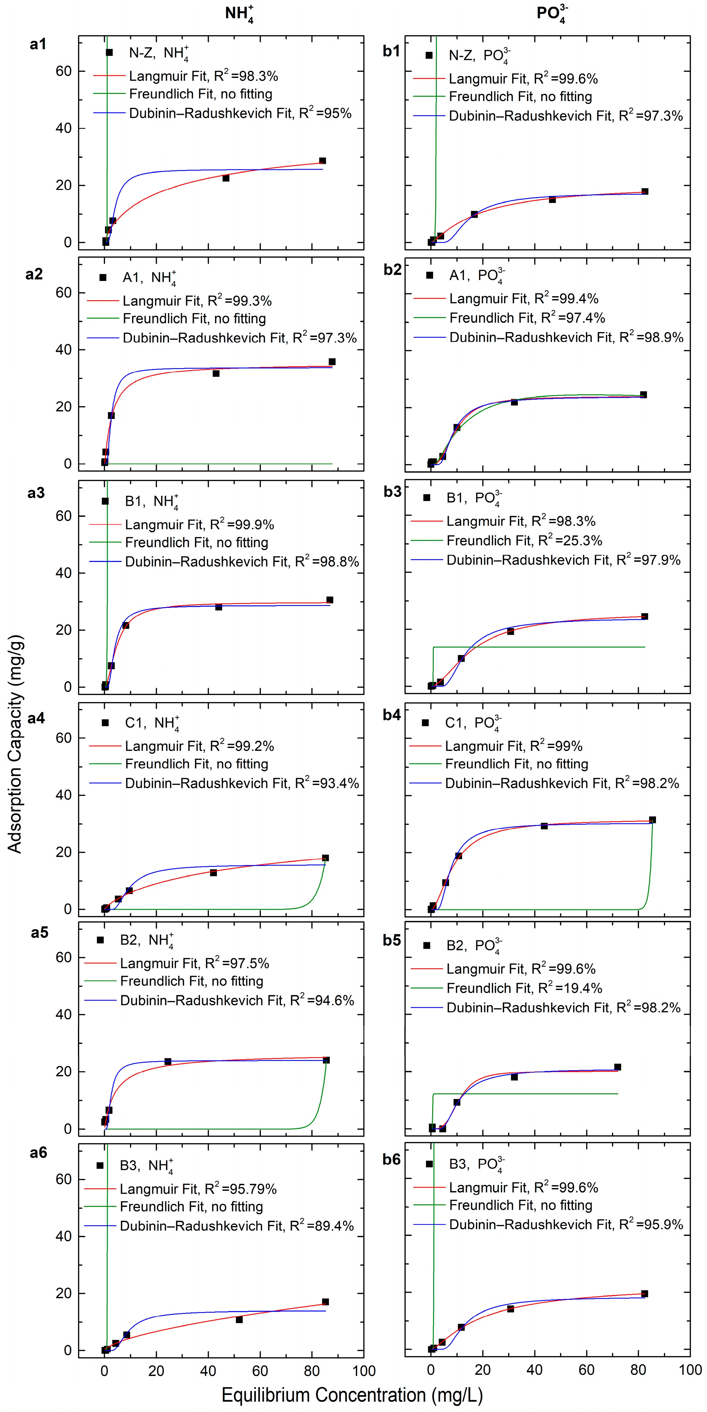 | Material | Ammonium Adsorption Isotherm Capacity (mg/g) | Phosphate/Orthophosphate Adsorption Isotherm Capacity (mg/g) | Citation |